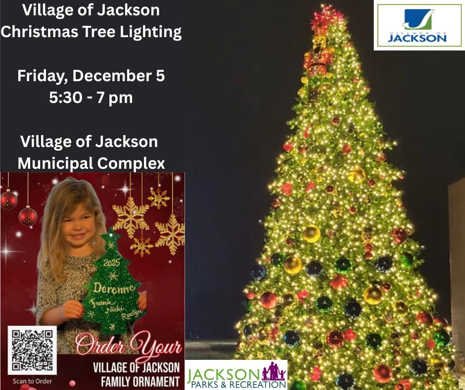 The Village of Jackson Christmas Tree Lighting begins at 5:30 p.m. on Friday, December 5 at the Jackson Municipal Complex.